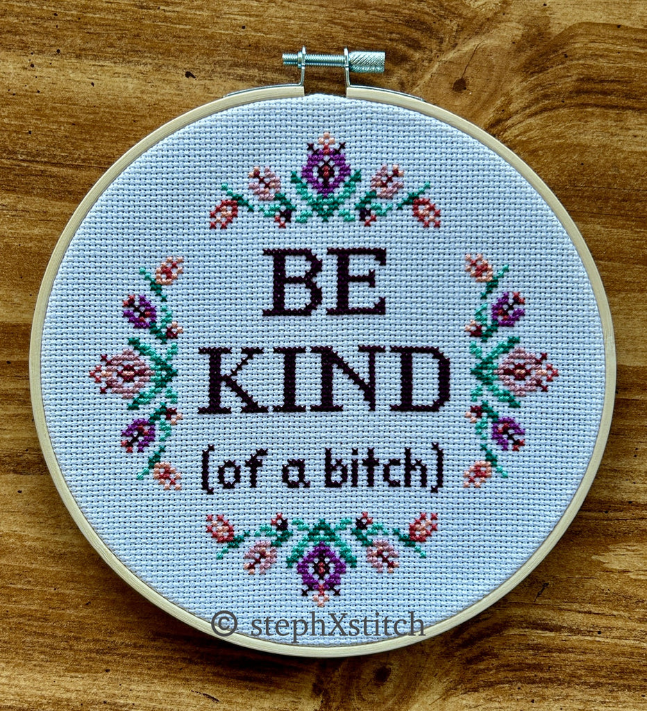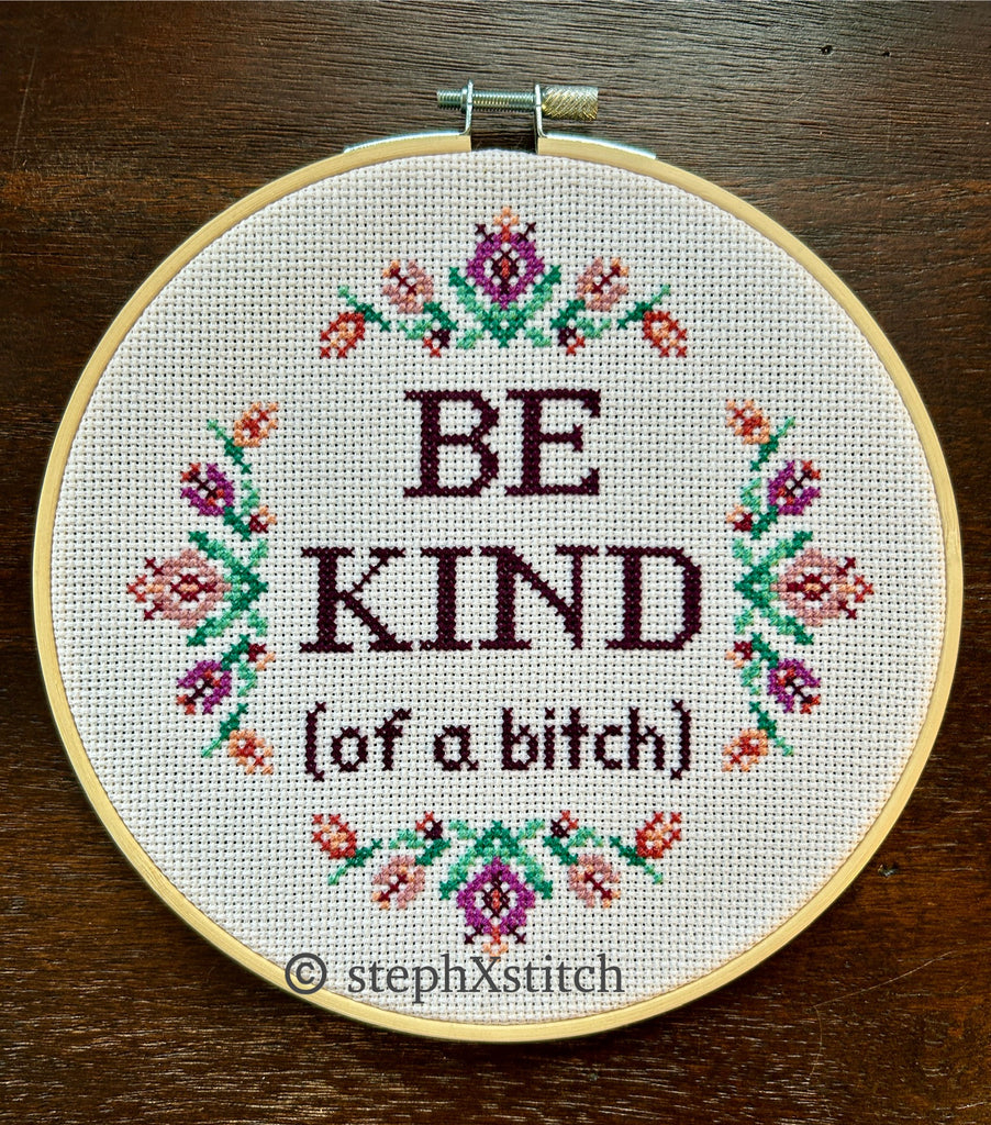 This is your sign to be kind of a bitch. This is a hand-stitch cross-stitch framed in a 7" bamboo hoop, ready to hang on your wall!