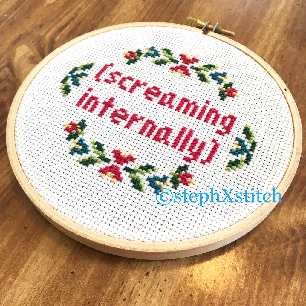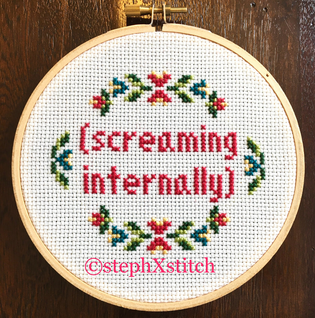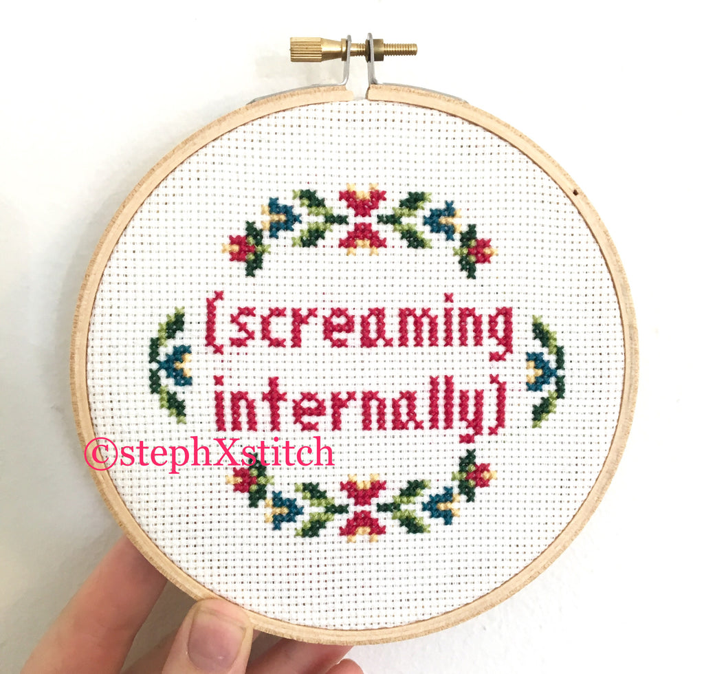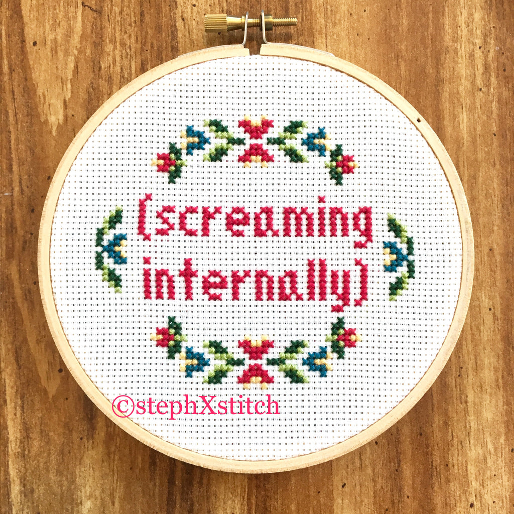 This is the perfect decor for an office, cubical, kitchen, or any other place where the stress can build. Glancing at this sassy, funny cross-stitch should bring you some scream-y peace.